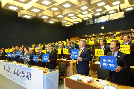 韓国の開城工業地区支援財団のキム・ジンヒャン理事長は11日、ソウル市の商工会議所議員会議室で開かれた「開城工業団地全面中断4年、今こそ開こう」大会の開会の辞で、「開城工団再開条件・環境作りのための開城工業地区支援財団と北側の中央特区開発指導総局の実務協議を公式提案する」と明かした。